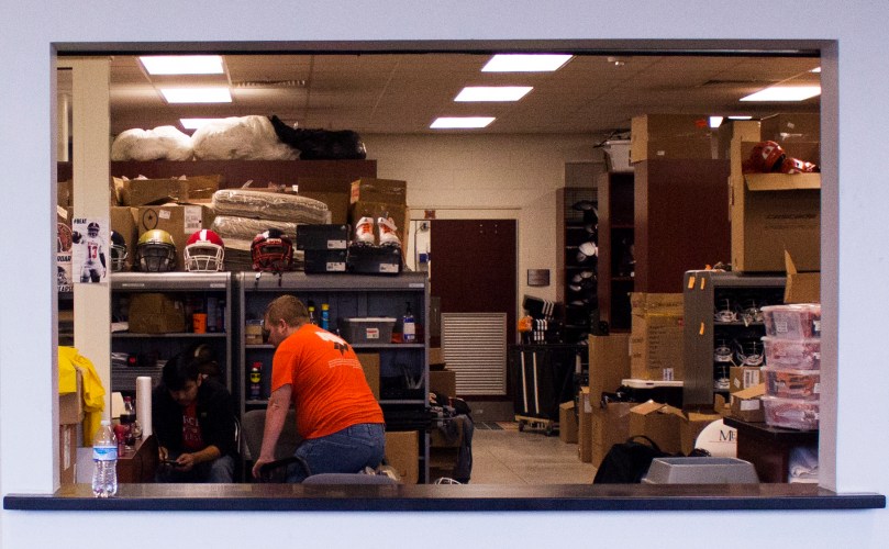 100615_SupportStaff_Graham_01 December 12, 2015 1820 × 1124 The View from the Sideline: a Story of Athletic Support Staff Anthony Maruffo and Trey Hardin discuss the day’s task list in the fieldhouse equipment room before practice on Tuesday, October 6, 2015. Like Loading...